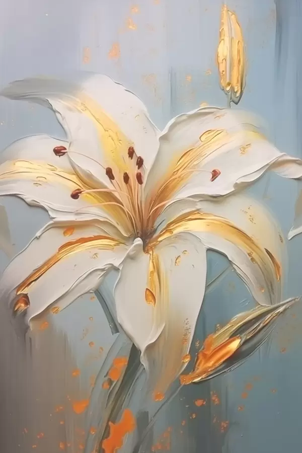 Poster Weiße Lilie mit gelben Strichen auf blauem Hintergrund Nr f45077