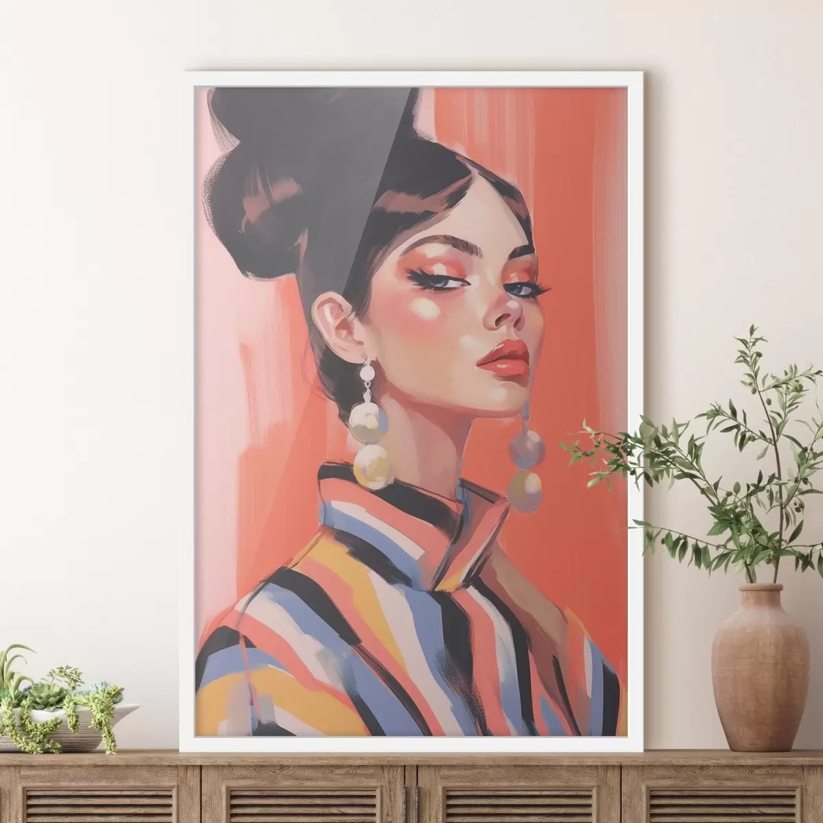 Poster Porträt einer Frau im gestreiften Hemd Nr f45079