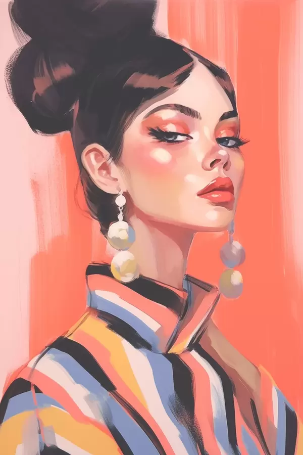 Poster Porträt einer Frau im gestreiften Hemd Nr f45079