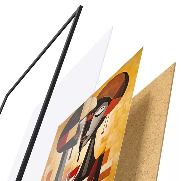 Das Poster besteht aus einem Rahmen, Plexiglas, einem gedruckten Bild und einer Rückwand aus Spanplatten. Dank der Halterungen auf der Rückseite kann das Poster sofort an die Wand gehängt werden.