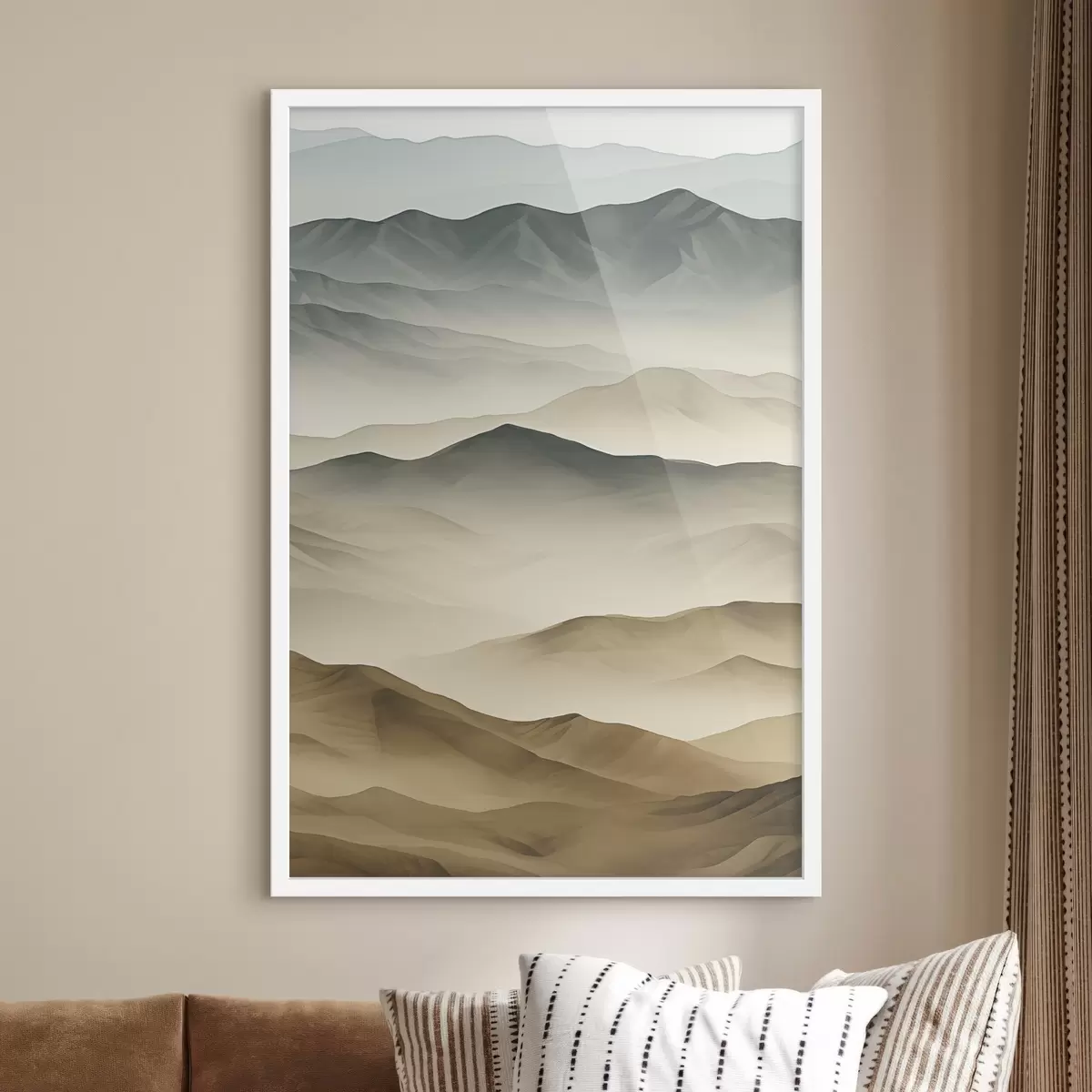 Poster berge, Schichten, Nebel, weicher Farbverlauf, natürlich, beige, abstrakt, Landschaft Nr f45095