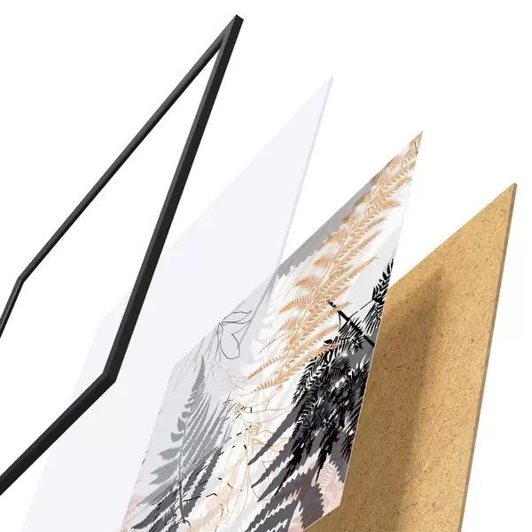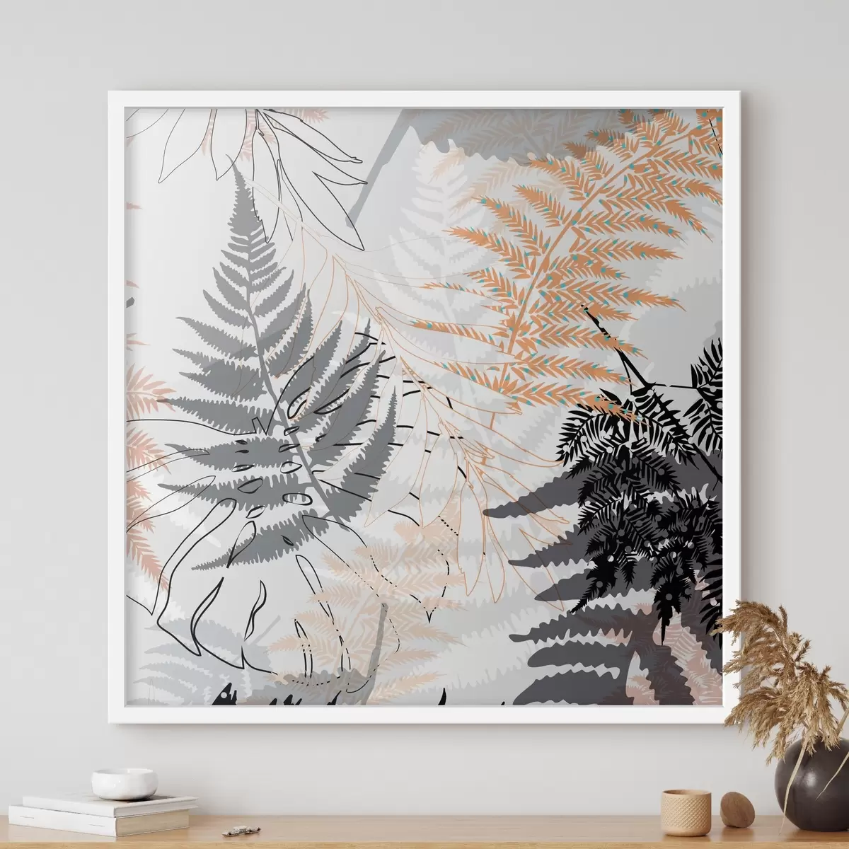 Poster farn, abstrakte Blätter, Muster, flaches Design, Kontrast, Grautöne, botanisch, Overlay f45101