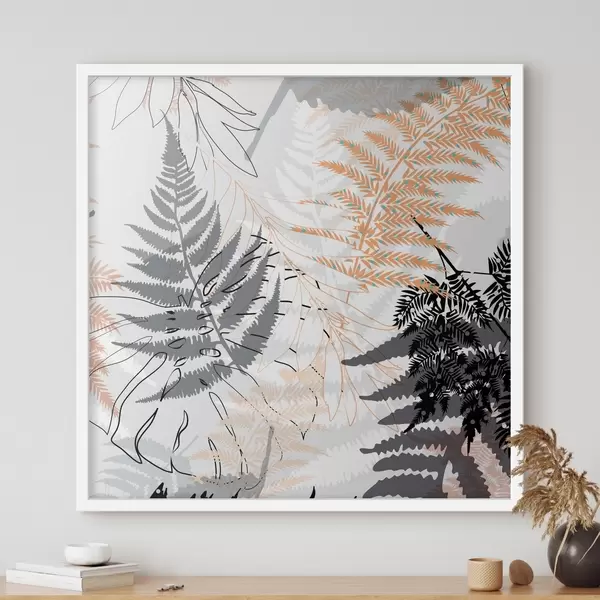 Poster farn, abstrakte Blätter, Muster, flaches Design, Kontrast, Grautöne, botanisch, Overlay Nr f45101