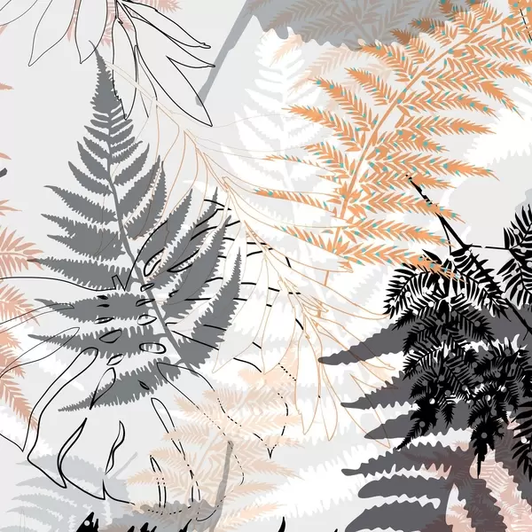 Poster farn, abstrakte Blätter, Muster, flaches Design, Kontrast, Grautöne, botanisch, Overlay Nr f45101