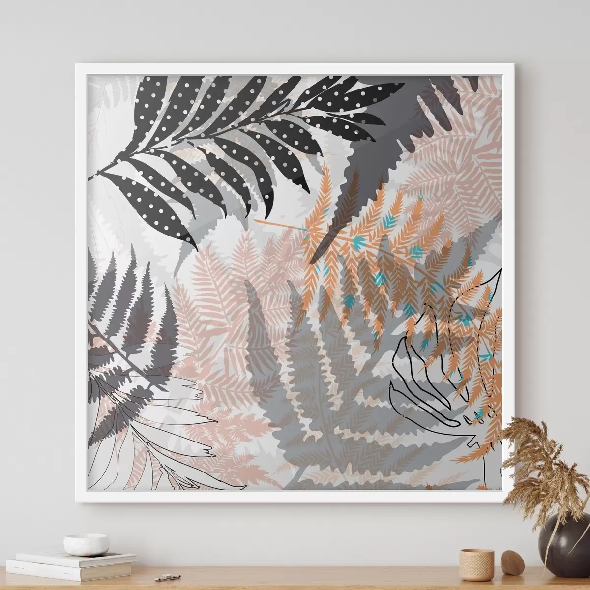 Poster tropische Blätter, Grafik, Textur, beige und schwarz, Silhouette, zeitgenössisch, Pflanze f45103
