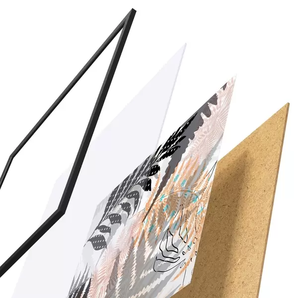 Das Poster besteht aus einem Rahmen, Plexiglas, einem gedruckten Bild und einer Rückwand aus Spanplatten. Dank der Halterungen auf der Rückseite kann das Poster sofort an die Wand gehängt werden.