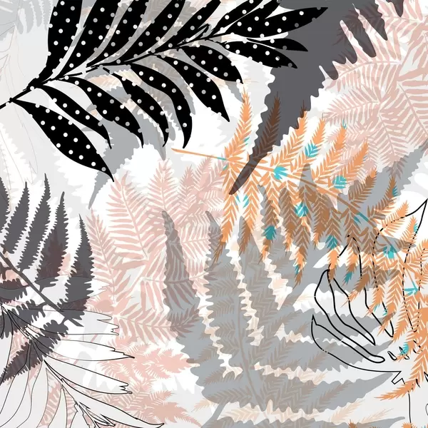 Poster tropische Blätter, Grafik, Textur, beige und schwarz, Silhouette, zeitgenössisch, Pflanze f45103