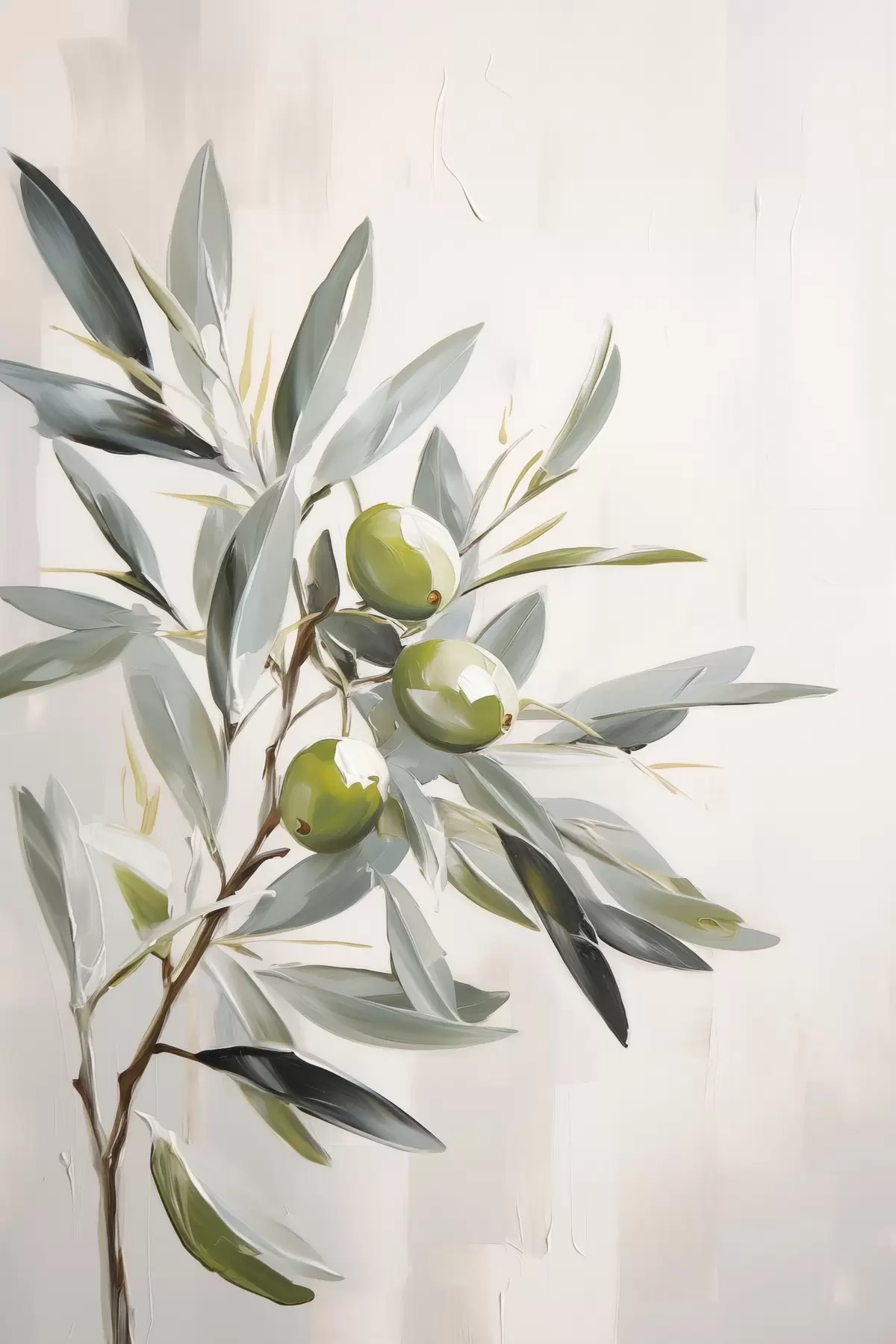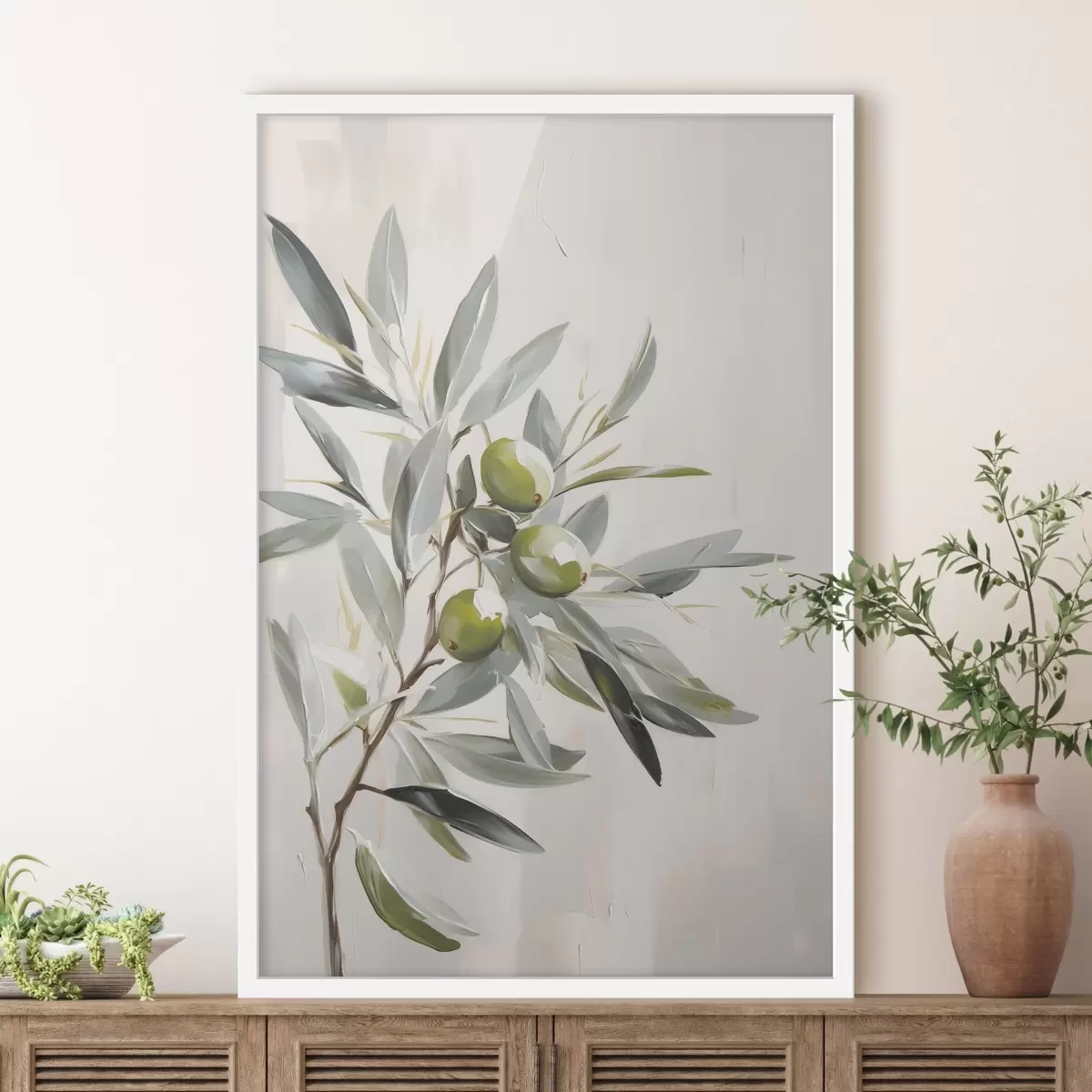 Poster olivenzweig, grüne Früchte, gedämpfte Töne, Blätter, minimal, natürlich, Ölgemälde, botanisch Nr f45109