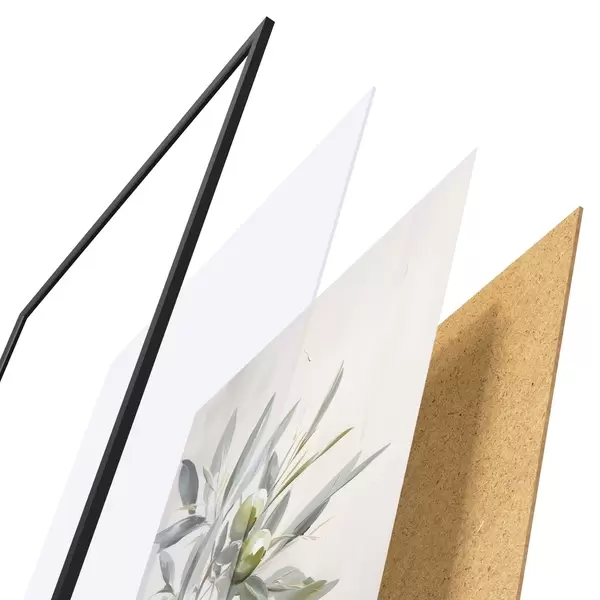 Das Poster besteht aus einem Rahmen, Plexiglas, einem gedruckten Bild und einer Rückwand aus Spanplatten. Dank der Halterungen auf der Rückseite kann das Poster sofort an die Wand gehängt werden.