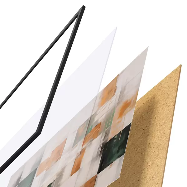 Das Poster besteht aus einem Rahmen, Plexiglas, einem gedruckten Bild und einer Rückwand aus Spanplatten. Dank der Halterungen auf der Rückseite kann das Poster sofort an die Wand gehängt werden.