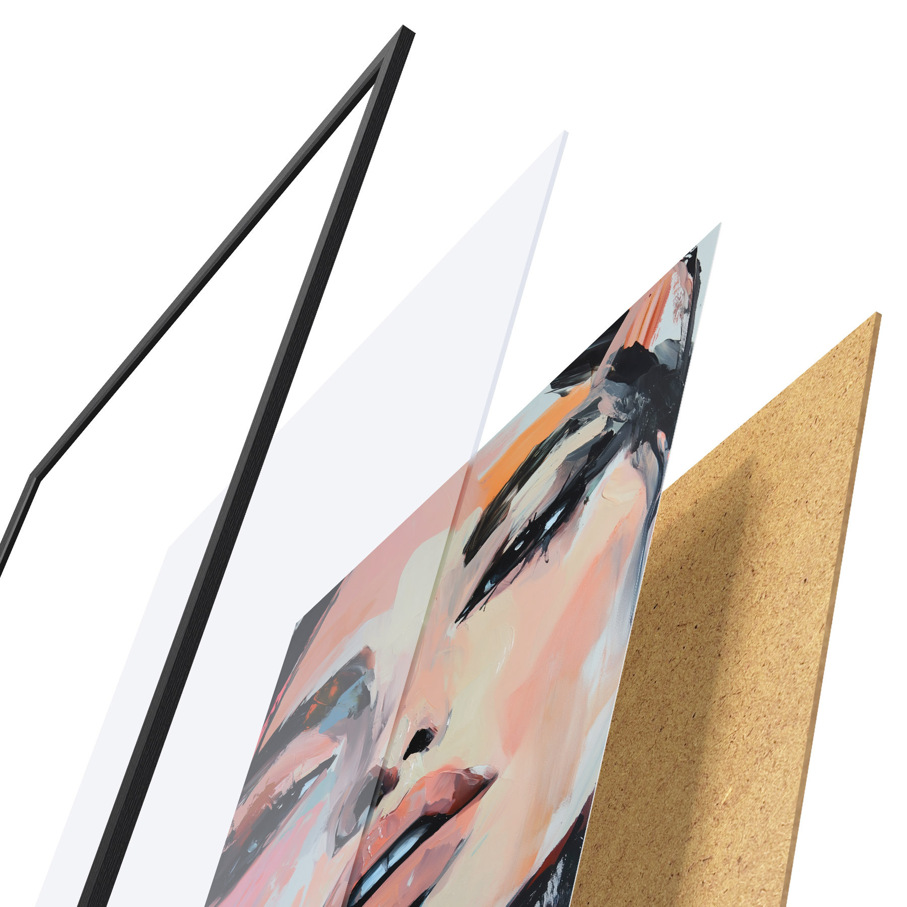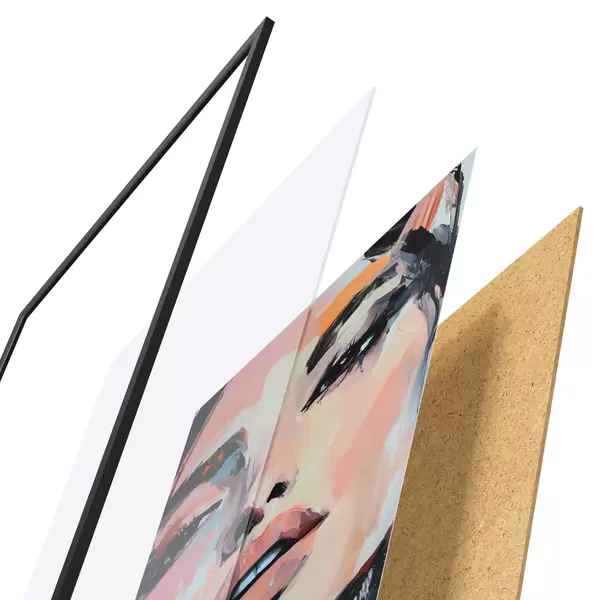 Das Poster besteht aus einem Rahmen, Plexiglas, einem gedruckten Bild und einer Rückwand aus Spanplatten. Dank der Halterungen auf der Rückseite kann das Poster sofort an die Wand gehängt werden.