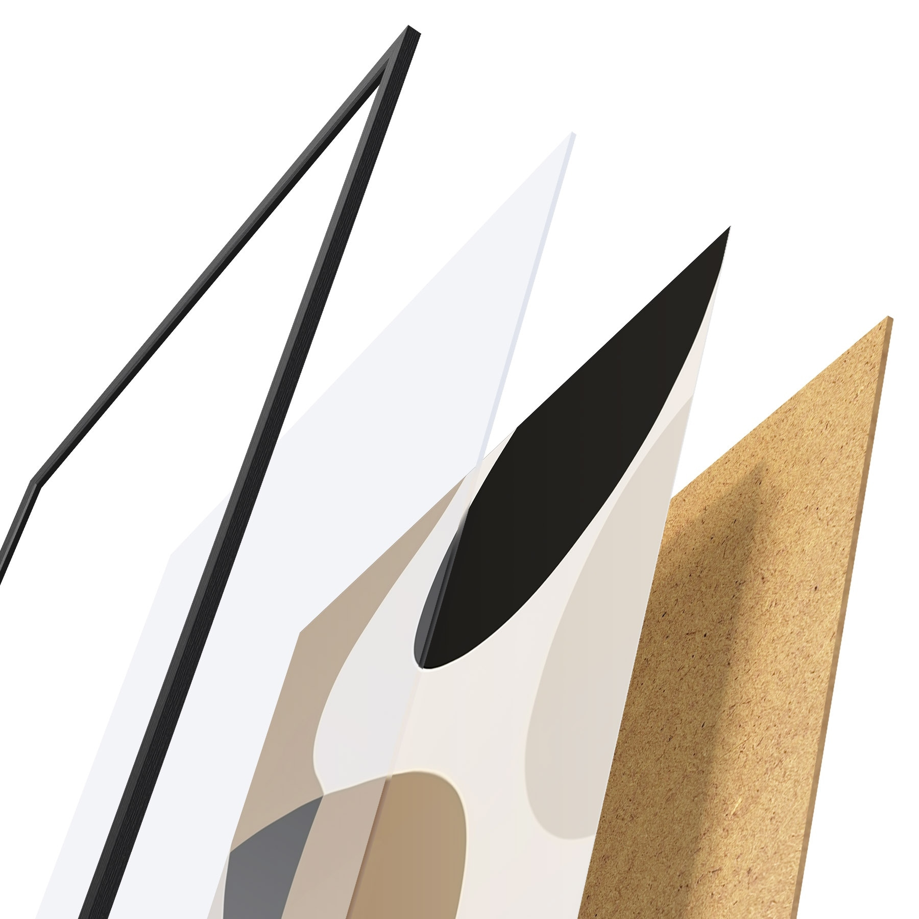 Das Poster besteht aus einem Rahmen, Plexiglas, einem gedruckten Bild und einer Rückwand aus Spanplatten. Dank der Halterungen auf der Rückseite kann das Poster sofort an die Wand gehängt werden.
