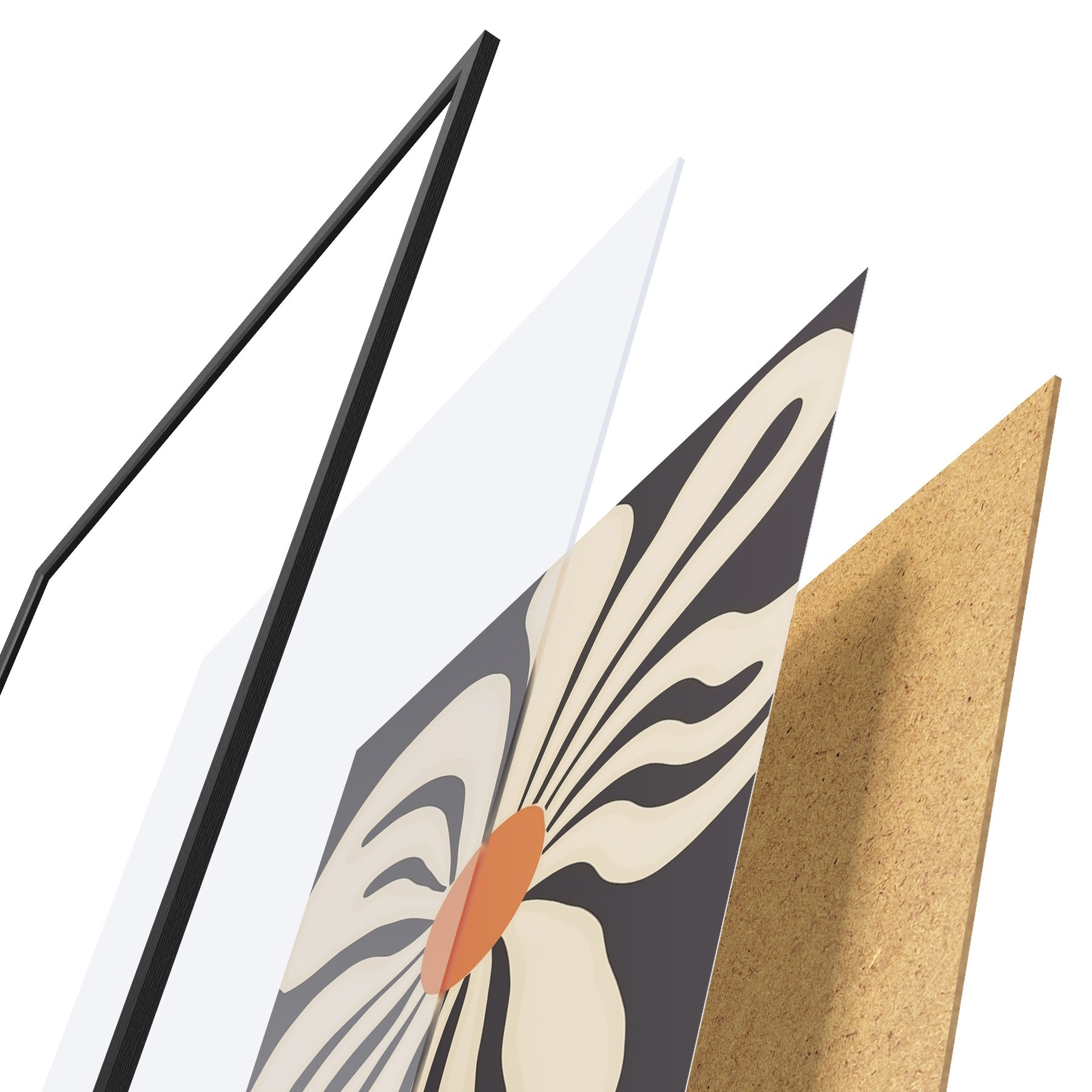 Das Poster besteht aus einem Rahmen, Plexiglas, einem gedruckten Bild und einer Rückwand aus Spanplatten. Dank der Halterungen auf der Rückseite kann das Poster sofort an die Wand gehängt werden.
