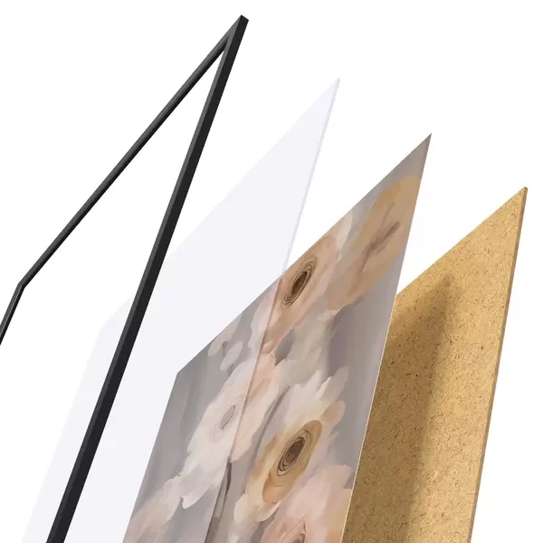 Das Poster besteht aus einem Rahmen, Plexiglas, einem gedruckten Bild und einer Rückwand aus Spanplatten. Dank der Halterungen auf der Rückseite kann das Poster sofort an die Wand gehängt werden.