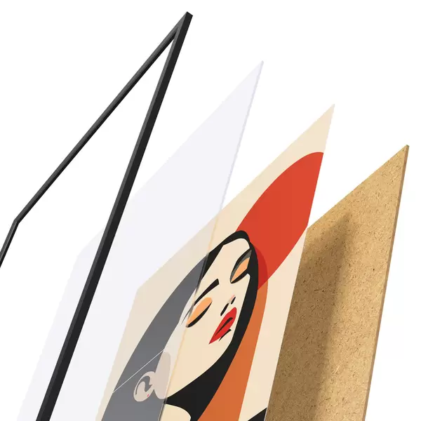Das Poster besteht aus einem Rahmen, Plexiglas, einem gedruckten Bild und einer Rückwand aus Spanplatten. Dank der Halterungen auf der Rückseite kann das Poster sofort an die Wand gehängt werden.