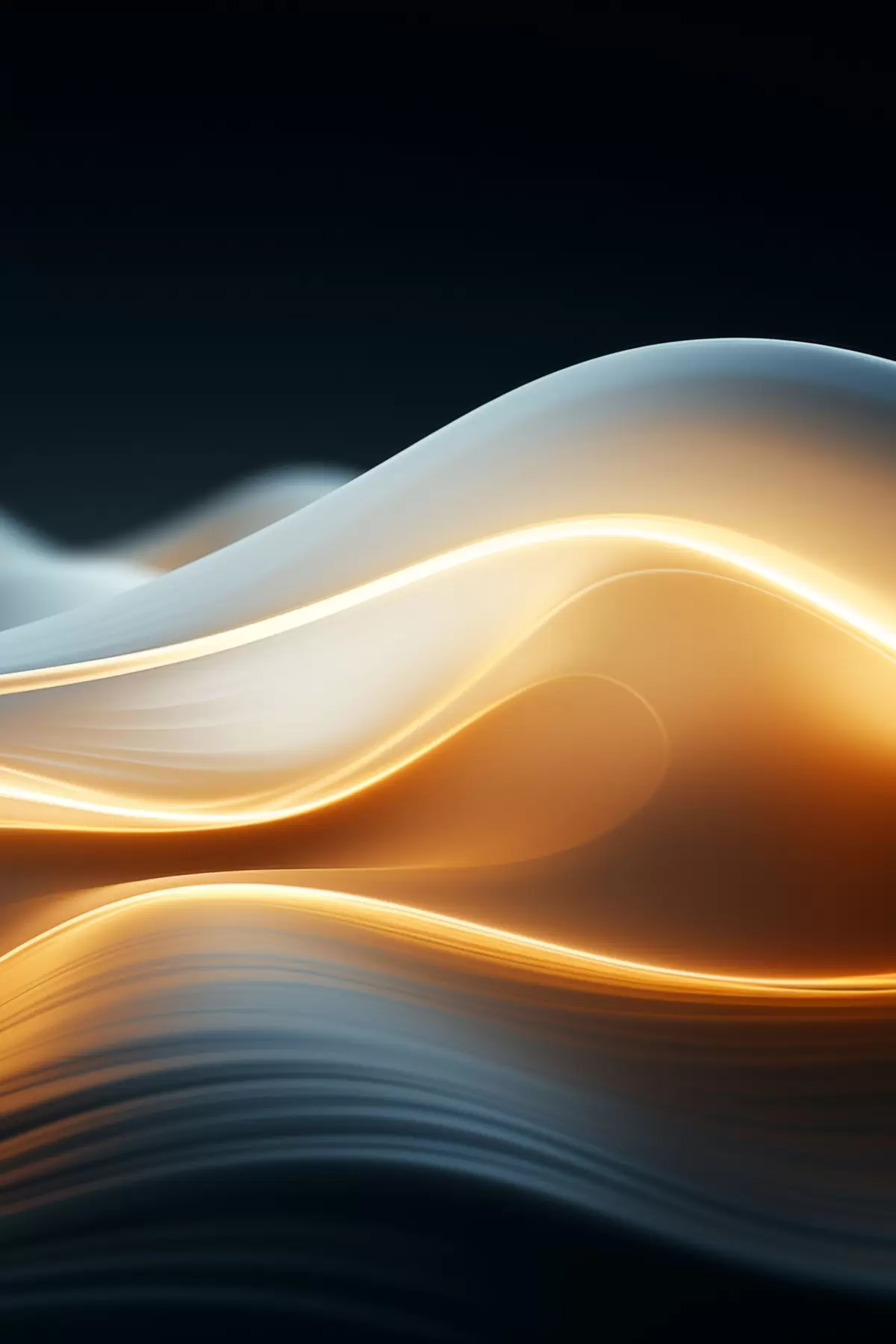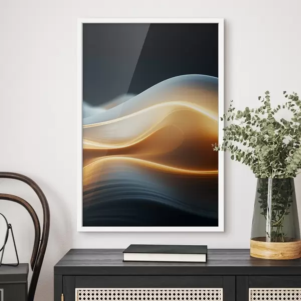 Poster Abstrakte fließende Formen mit orangefarbenen Linien, glatte Kurven und Linien, dynamische Komposition, dunkler Hintergrund Nr f45183