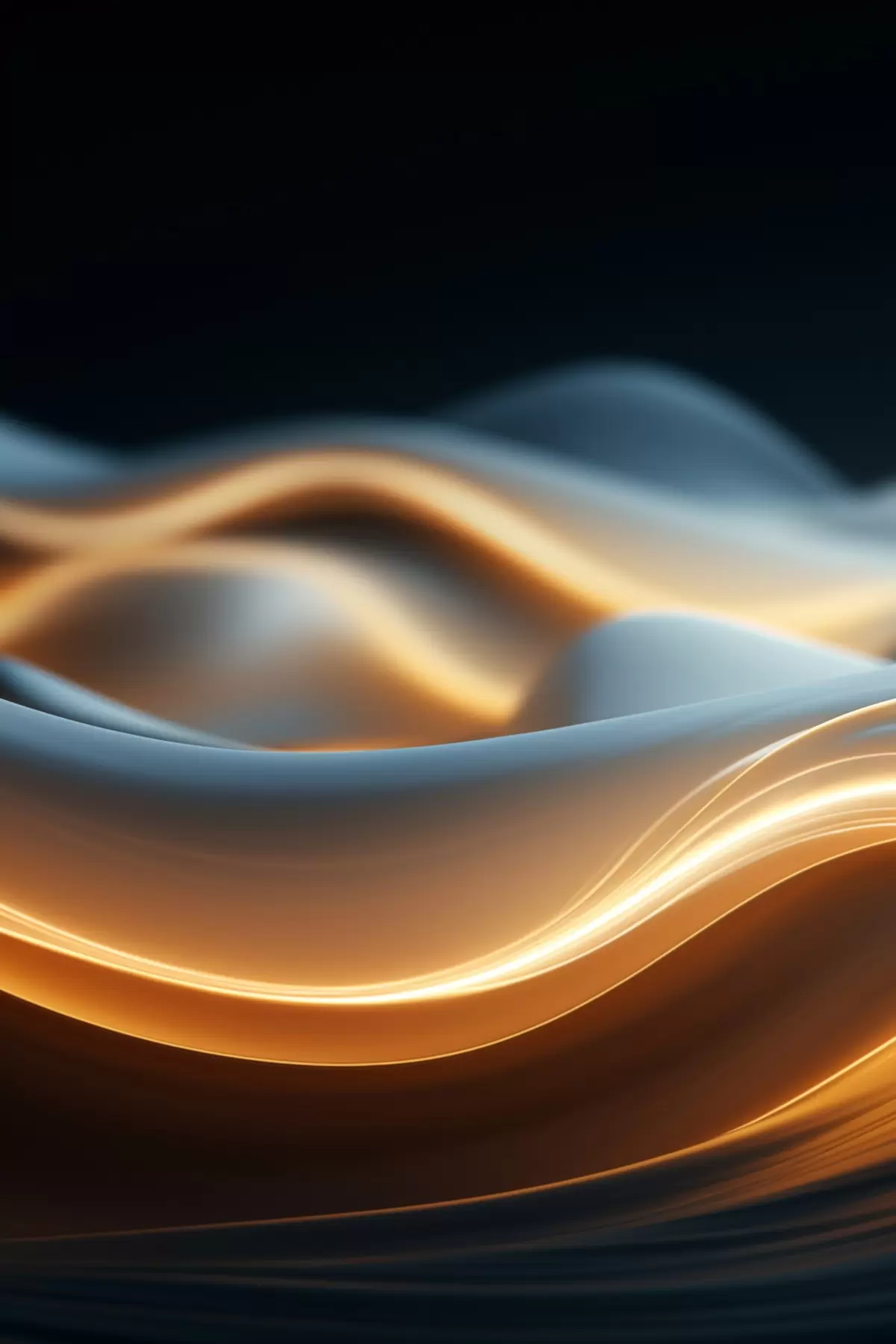 Poster Abstrakte fließende Formen mit orangefarbenen Linien, glatte Kurven und Linien, dynamische Komposition, dunkler Hintergrund f45184