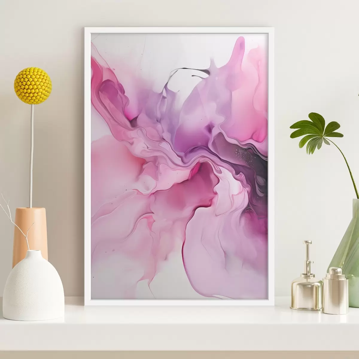 Poster Abstrakte Wirbel aus Rosa, Lila und Schwarz gehen in einer fließenden, organischen Komposition ineinander über und erzeugen ein Gefühl von Bewegung Nr f45195