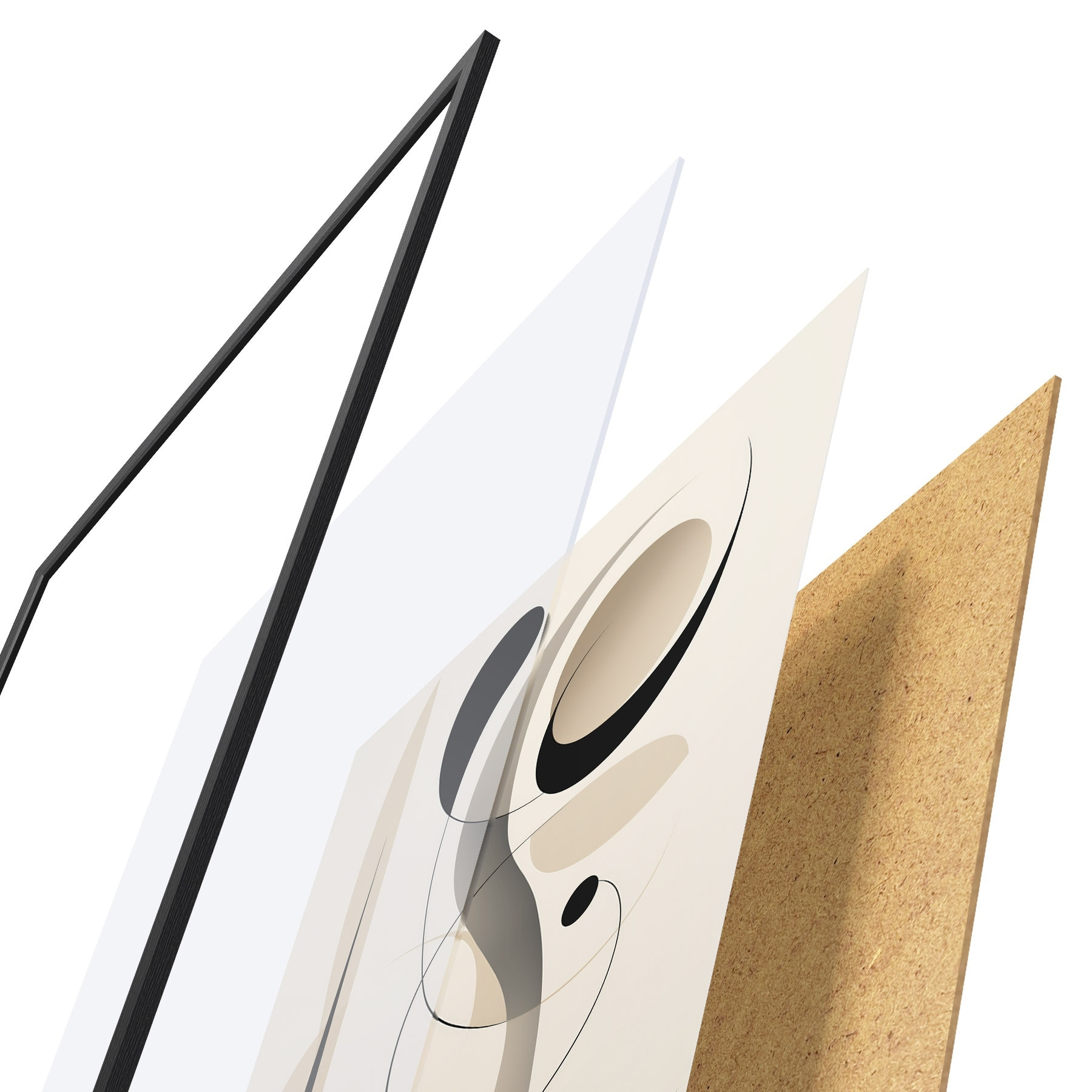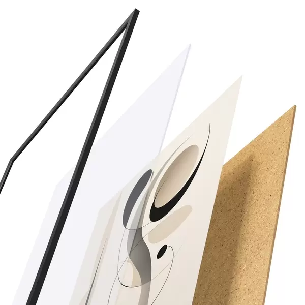 Das Poster besteht aus einem Rahmen, Plexiglas, einem gedruckten Bild und einer Rückwand aus Spanplatten. Dank der Halterungen auf der Rückseite kann das Poster sofort an die Wand gehängt werden.