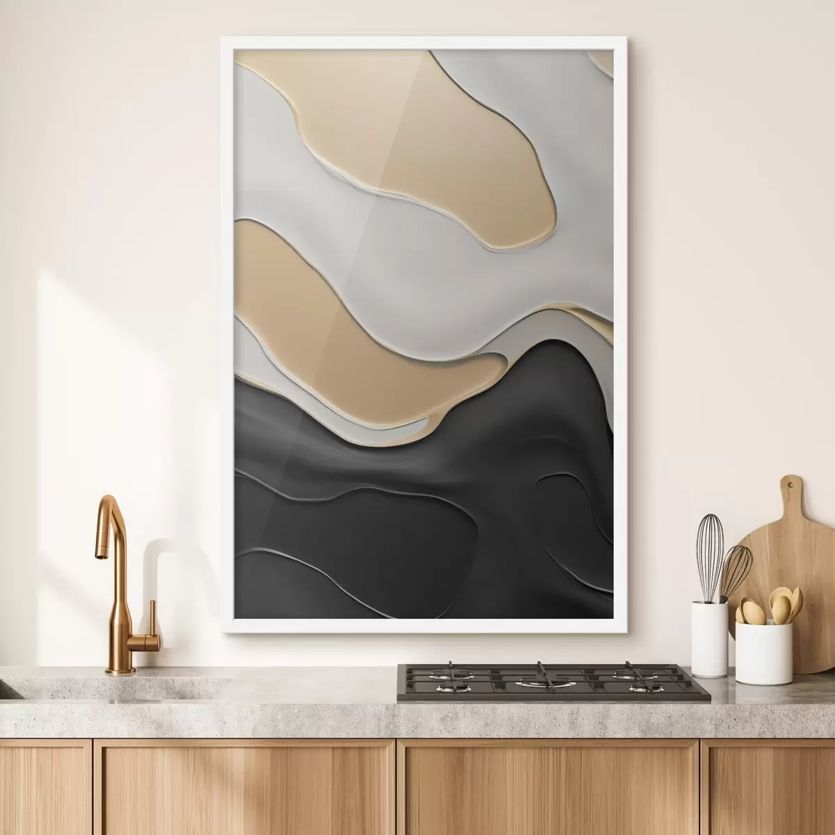 Das Poster besteht aus einem Rahmen, Plexiglas, einem gedruckten Bild und einer Rückwand aus Spanplatten. Dank der Halterungen auf der Rückseite kann das Poster sofort an die Wand gehängt werden.
