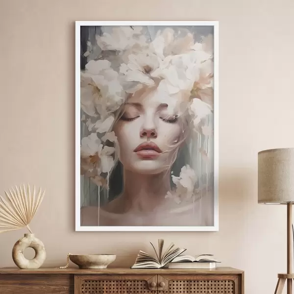 Poster Weibliches Porträt mit weißen Blumen Nr f45218