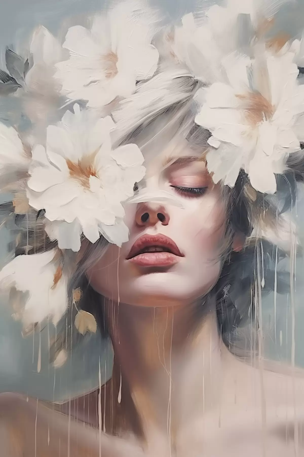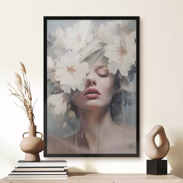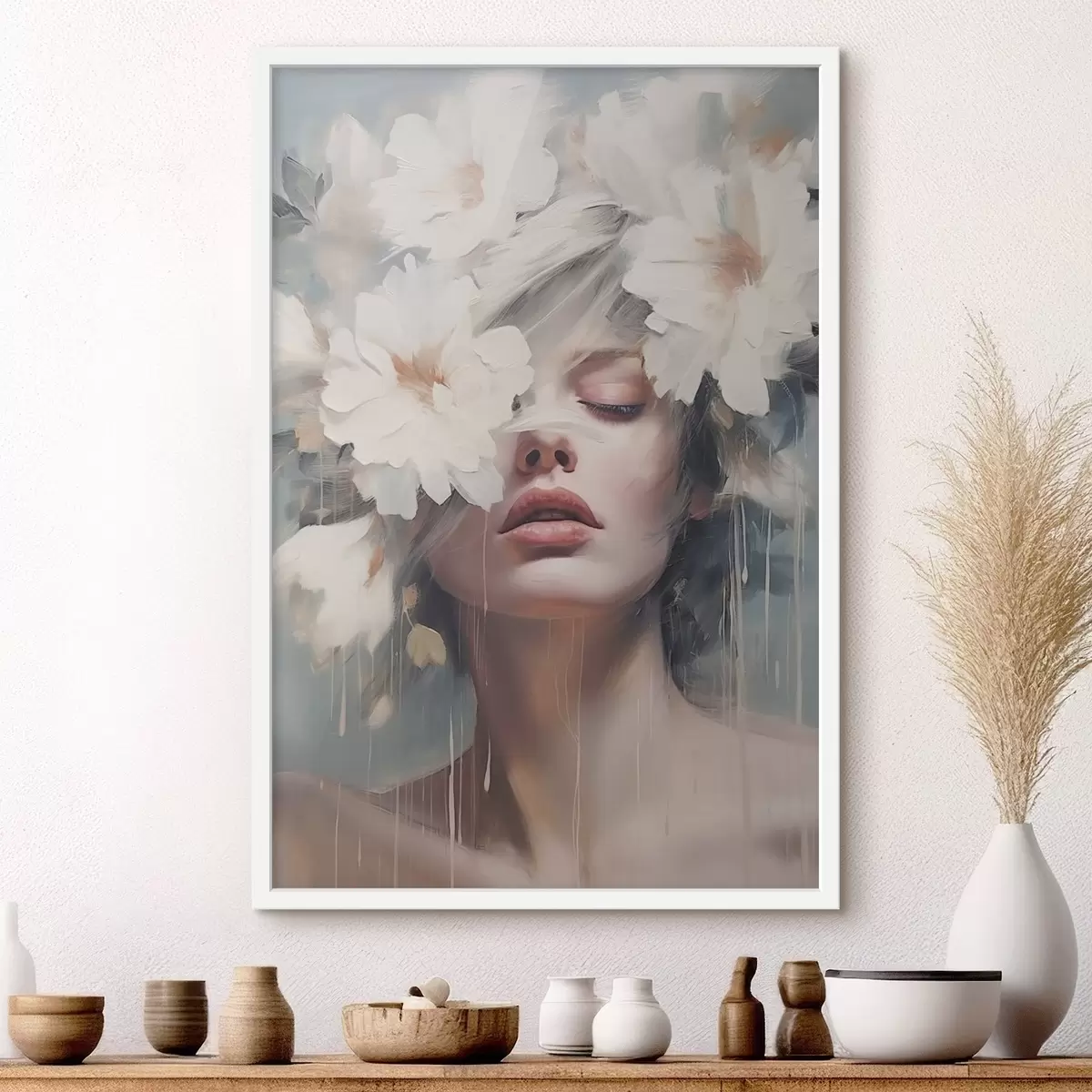 Poster Weibliches Porträt mit weißen Blumen Nr f45219