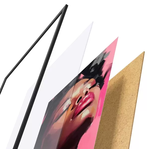 Das Poster besteht aus einem Rahmen, Plexiglas, einem gedruckten Bild und einer Rückwand aus Spanplatten. Dank der Halterungen auf der Rückseite kann das Poster sofort an die Wand gehängt werden.