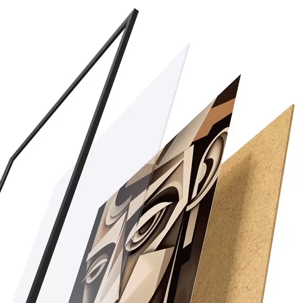 Das Poster besteht aus einem Rahmen, Plexiglas, einem gedruckten Bild und einer Rückwand aus Spanplatten. Dank der Halterungen auf der Rückseite kann das Poster sofort an die Wand gehängt werden.