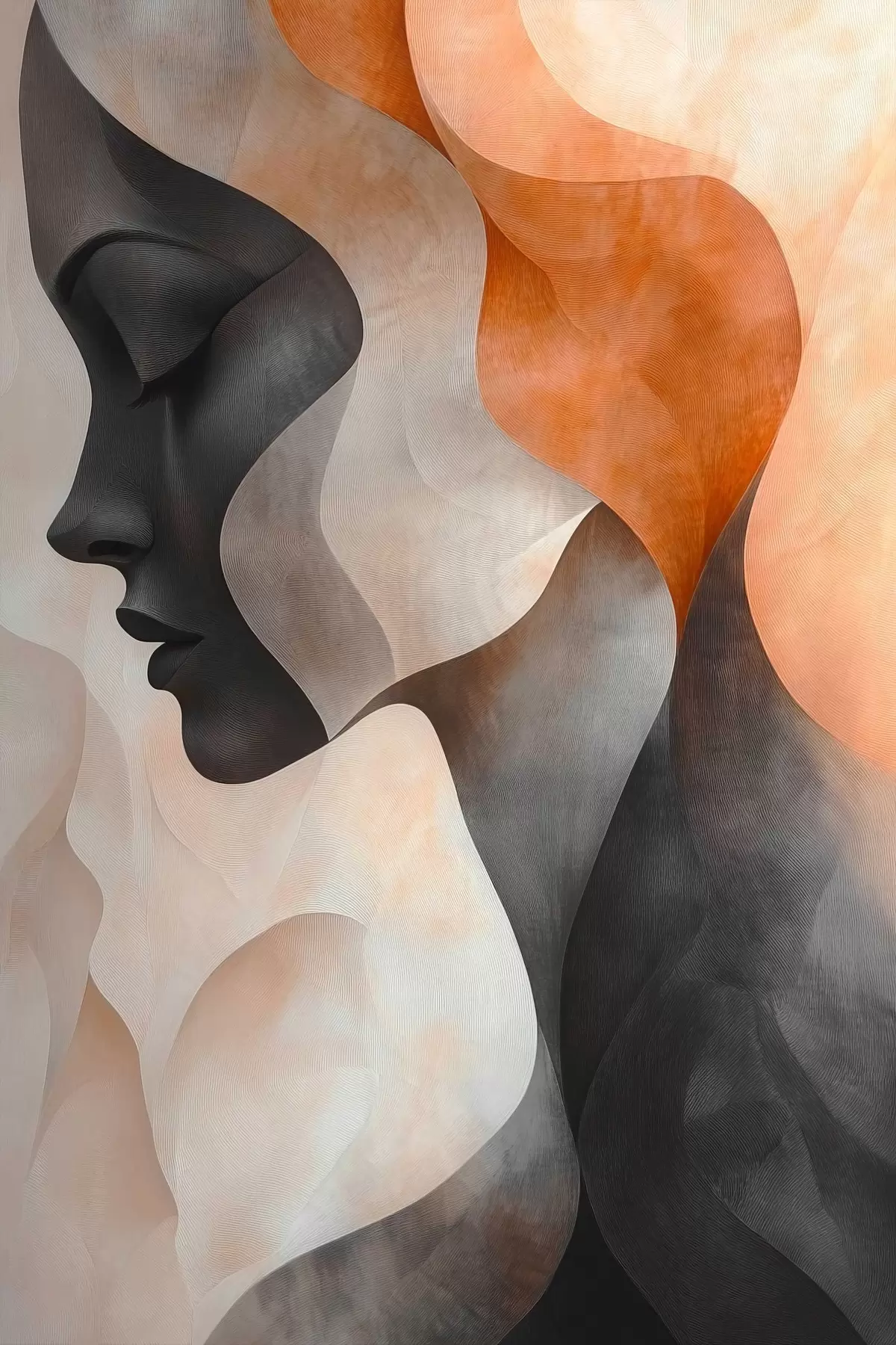 Poster Abstraktion mit dem Porträt einer Frau Nr f45235