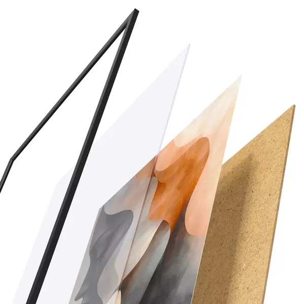 Das Poster besteht aus einem Rahmen, Plexiglas, einem gedruckten Bild und einer Rückwand aus Spanplatten. Dank der Halterungen auf der Rückseite kann das Poster sofort an die Wand gehängt werden.