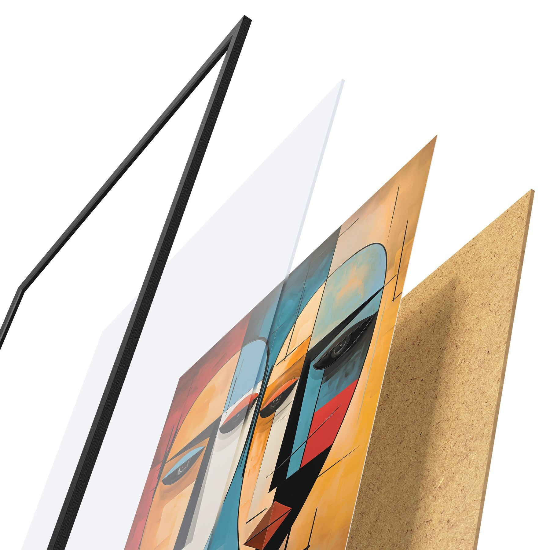 Das Poster besteht aus einem Rahmen, Plexiglas, einem gedruckten Bild und einer Rückwand aus Spanplatten. Dank der Halterungen auf der Rückseite kann das Poster sofort an die Wand gehängt werden.