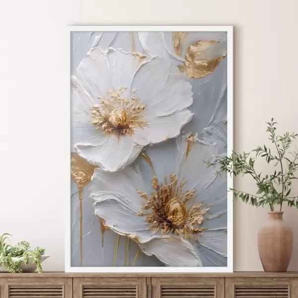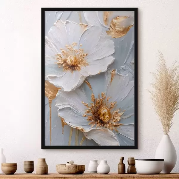 Poster Strukturierte Gänseblümchen: Impasto-Kunst mit ausdrucksstarken Pinselstrichen f45241