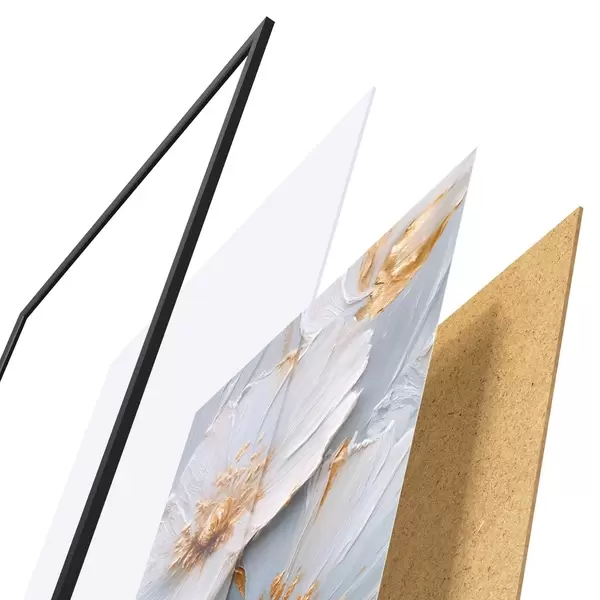 Das Poster besteht aus einem Rahmen, Plexiglas, einem gedruckten Bild und einer Rückwand aus Spanplatten. Dank der Halterungen auf der Rückseite kann das Poster sofort an die Wand gehängt werden.