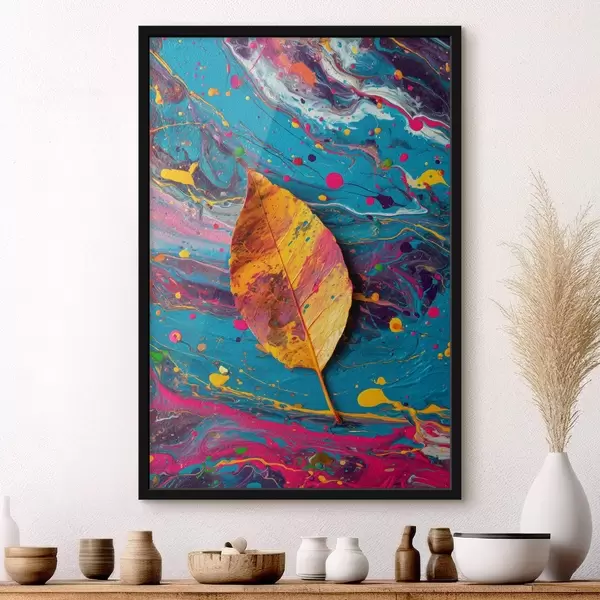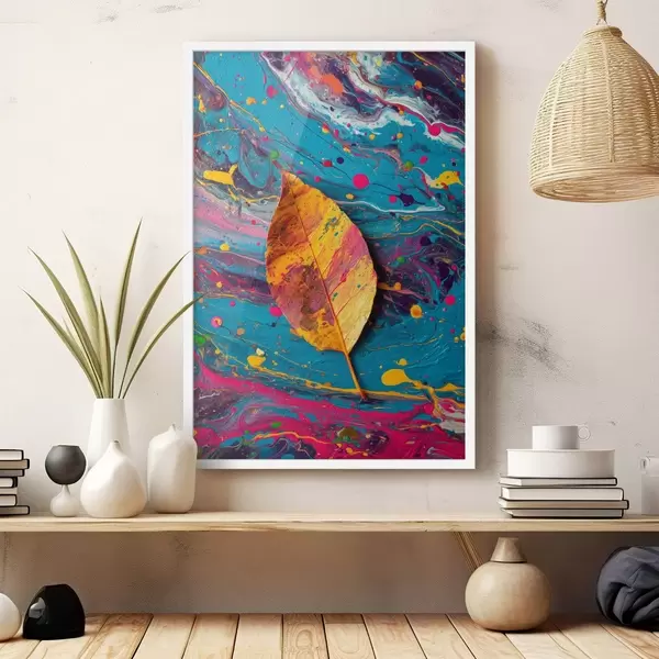 Poster Helle Blatt auf einem bunten Hintergrund: abstrakte Zusammensetzung Nr f45245