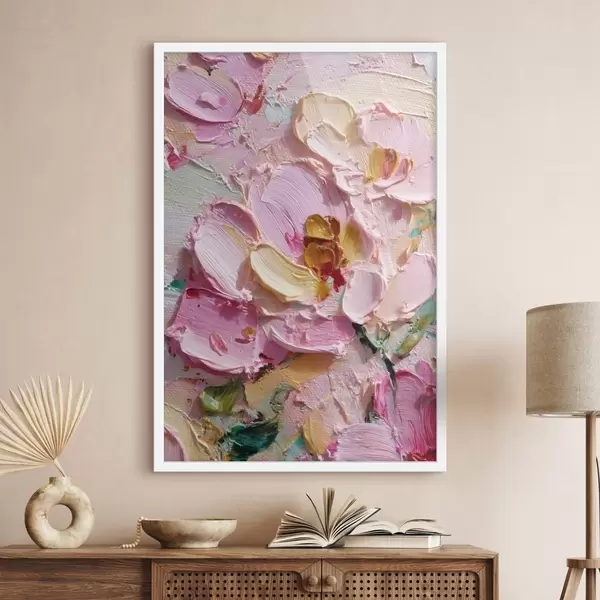 Poster Rosa Magnolien: Strukturierte Malerei mit dimensionalen Strichen Nr f45249