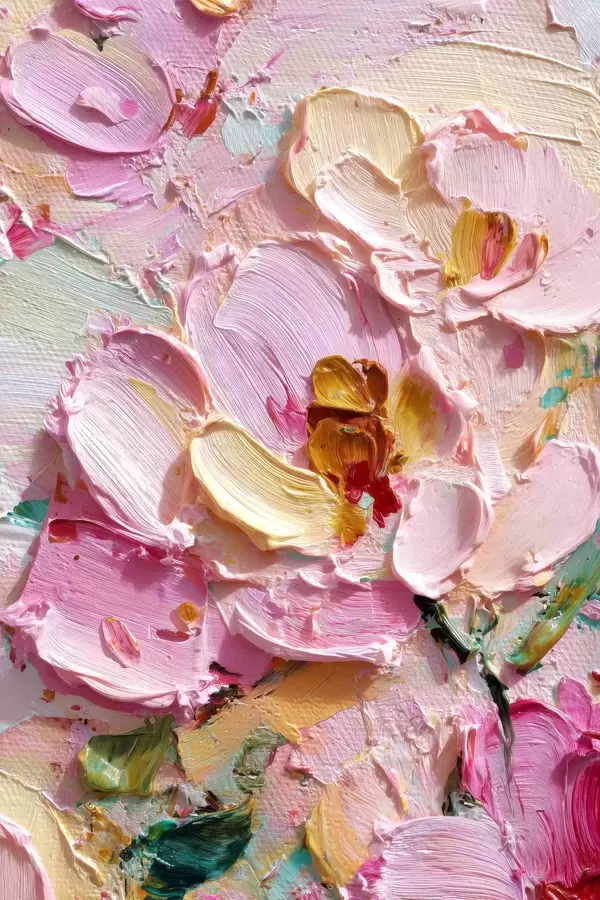 Poster Rosa Magnolien: Strukturierte Malerei mit dimensionalen Strichen Nr f45249