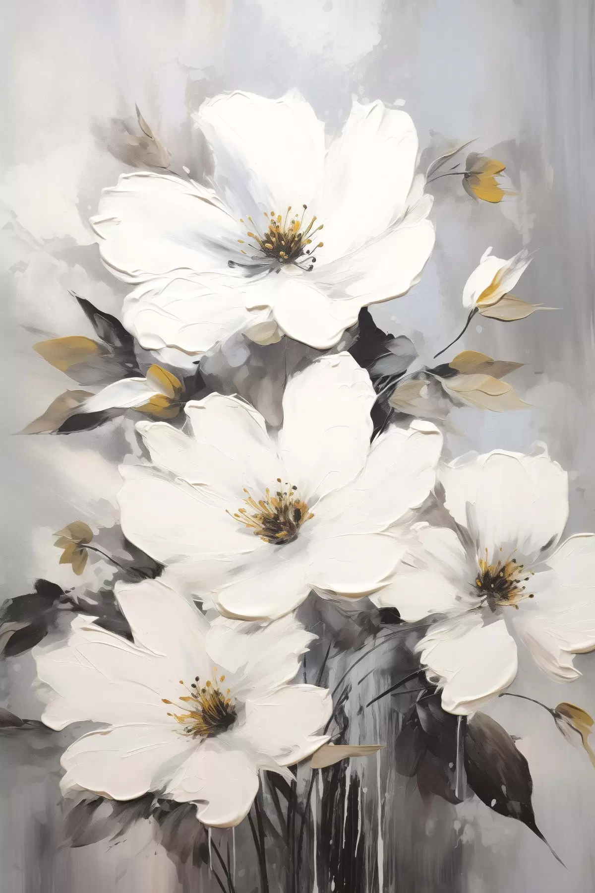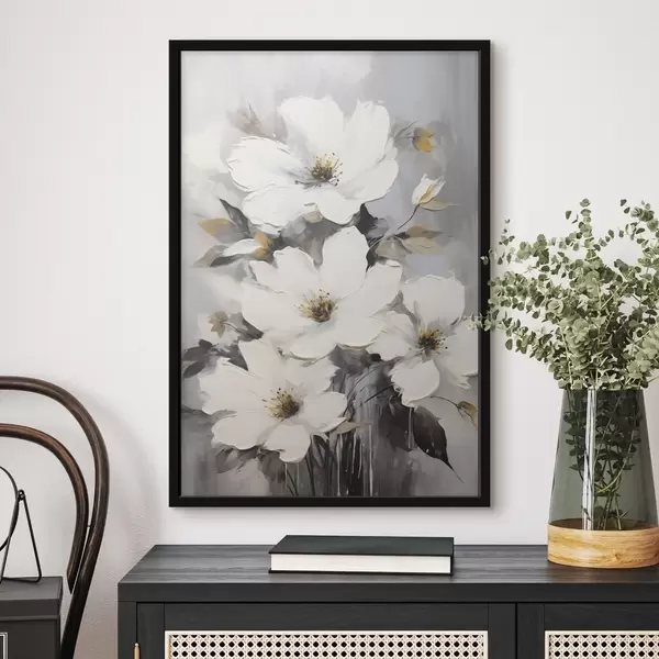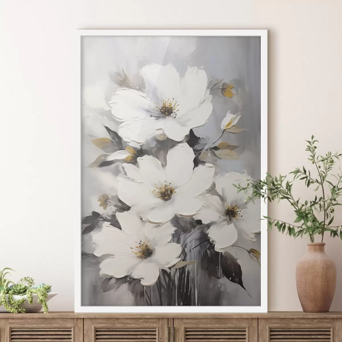 Poster Weiße Blumen: volumetrische Malerei auf grauem Hintergrund Nr f45252