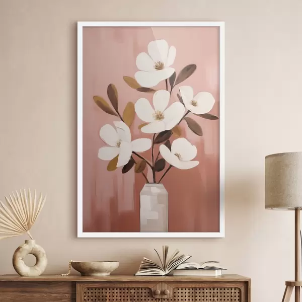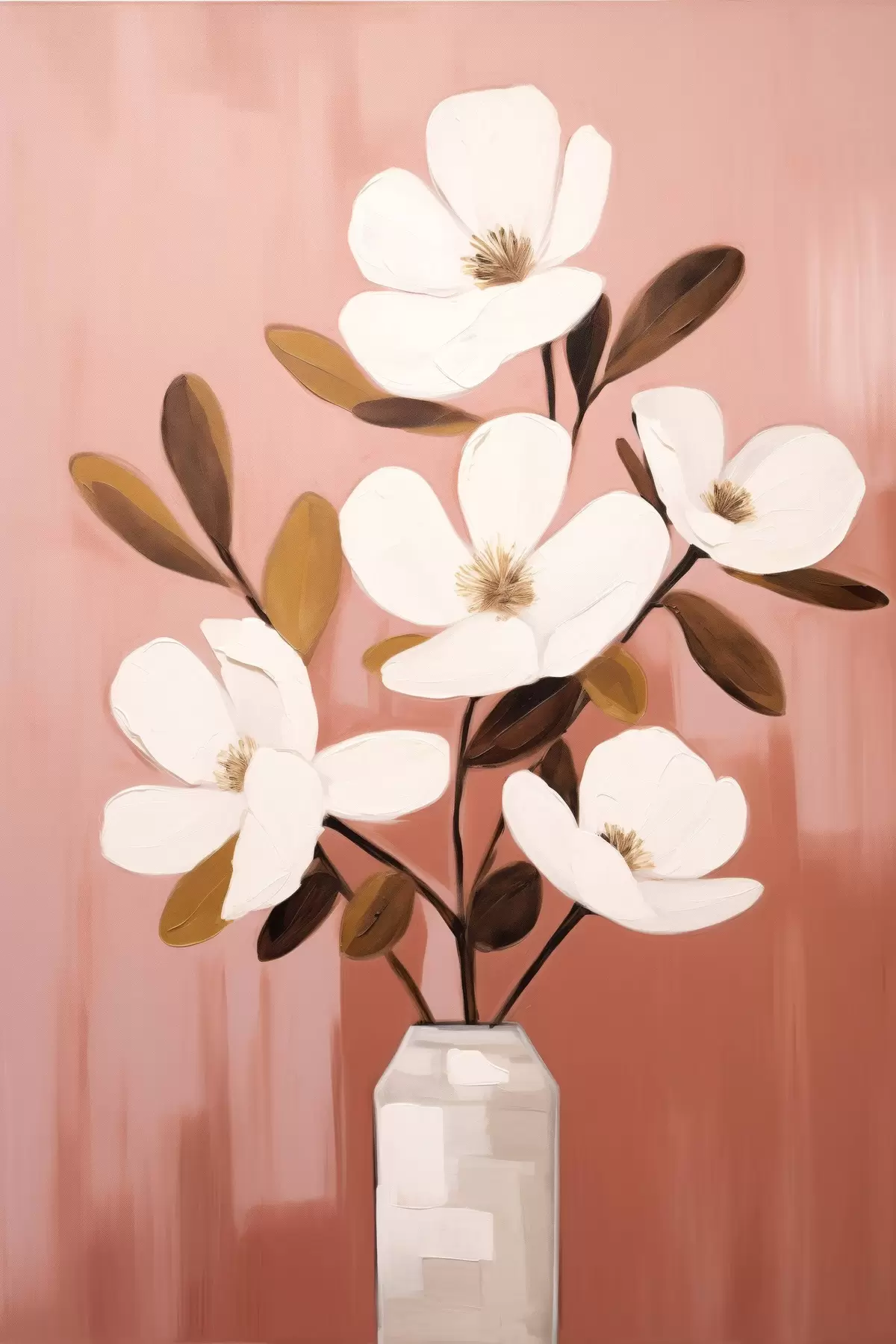 Poster Weiße Magnolien in einer weißen Vase: minimalistische Blumenmalerei Nr f45254