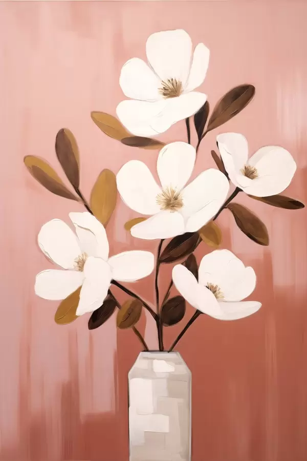 Poster Weiße Magnolien in einer weißen Vase: minimalistische Blumenmalerei f45254