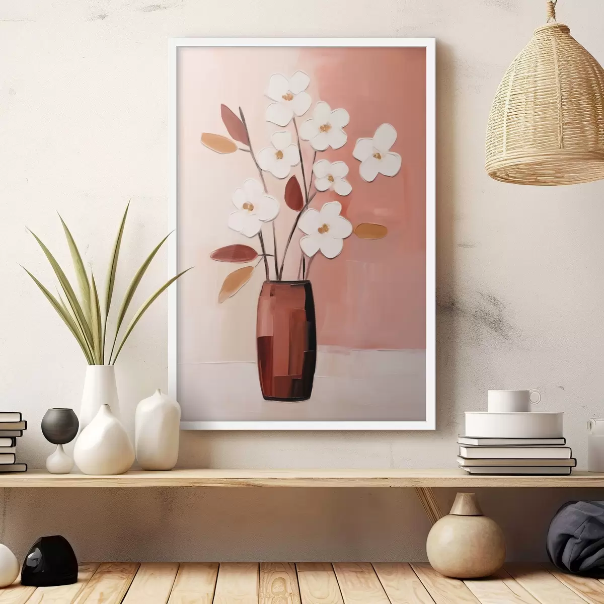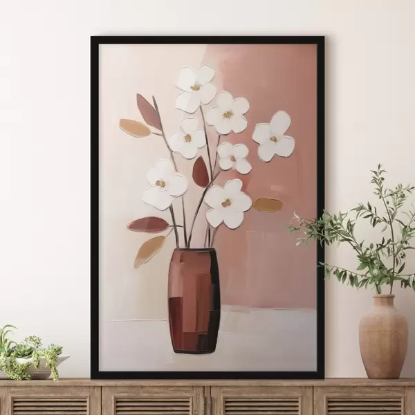 Poster Weiße Blumen in einer dunklen Vase: moderne Blumenmalerei Nr f45255
