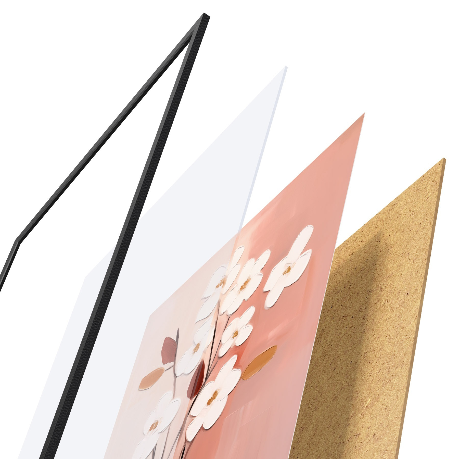 Das Poster besteht aus einem Rahmen, Plexiglas, einem gedruckten Bild und einer Rückwand aus Spanplatten. Dank der Halterungen auf der Rückseite kann das Poster sofort an die Wand gehängt werden.