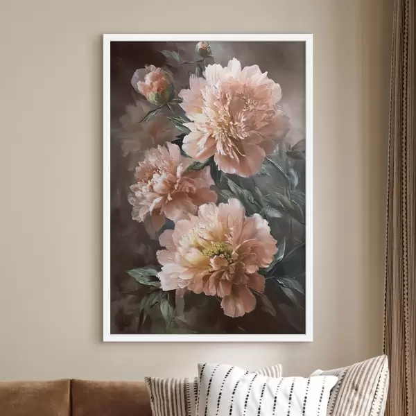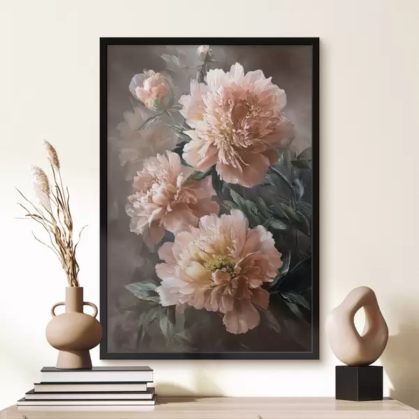 Poster Blumenstrauß aus rosa Pfingstrosen mit fetten Strichen auf dunklem Hintergrund Nr f45260