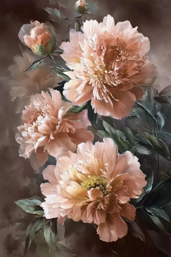 Poster Blumenstrauß aus rosa Pfingstrosen mit fetten Strichen auf dunklem Hintergrund Nr f45260
