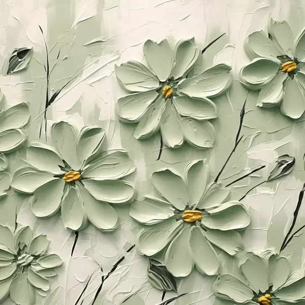 Poster Grüne Blumen mit gelben Zentren gemalt in dicken Pinselstrichen auf einem hellen Hintergrund Nr f45265