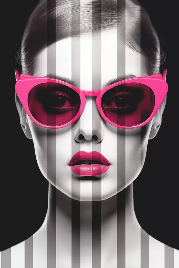 Poster Frau mit rosa Brille mit schwarzen und weißen Streifen f45315