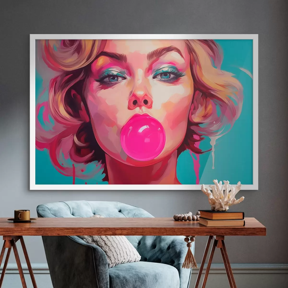 Poster Mädchen mit rosa Kaugummi f45321