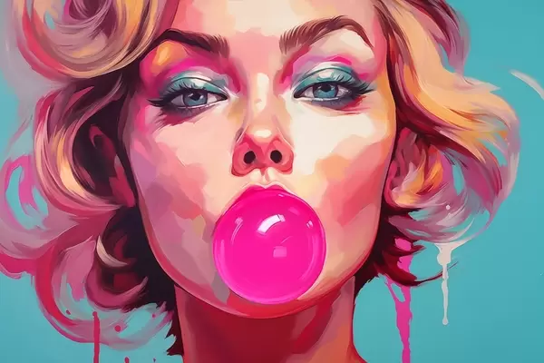Poster Mädchen mit rosa Kaugummi Nr f45321