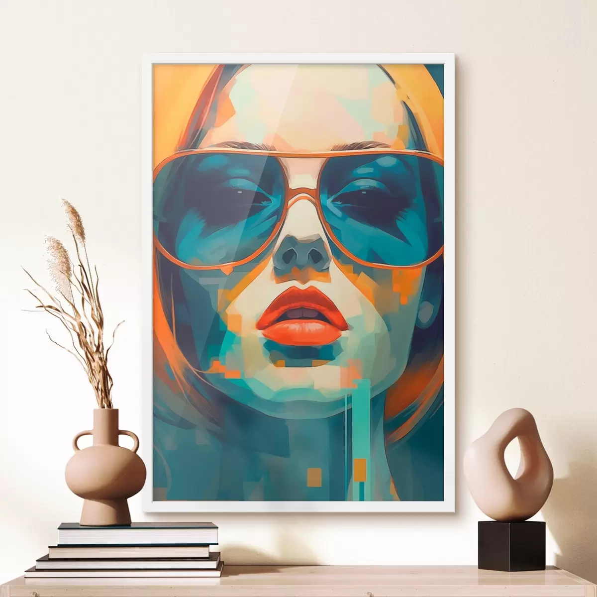 Poster Abstraktes Frauenporträt mit Sonnenbrille f45328