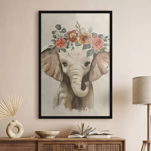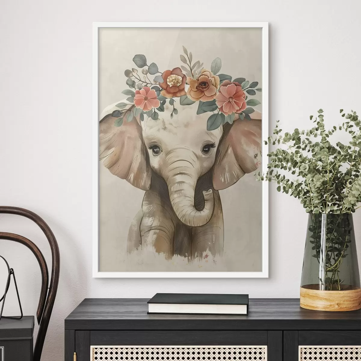 Poster Niedlicher Aquarell-Elefant mit Blumen Nr f45330