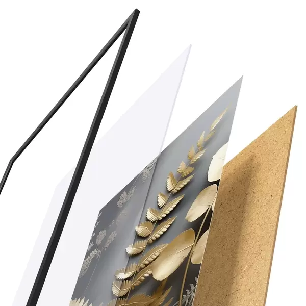 Das Poster besteht aus einem Rahmen, Plexiglas, einem gedruckten Bild und einer Rückwand aus Spanplatten. Dank der Halterungen auf der Rückseite kann das Poster sofort an die Wand gehängt werden.